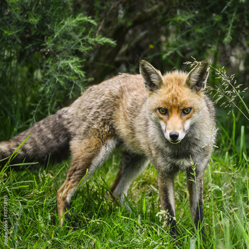 © veneratio, Fototapeta premium Stunning male fox in long lush green grass of Summer field