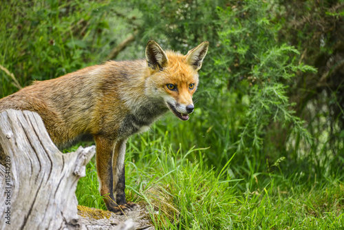 © veneratio, Fototapeta premium Stunning male fox in long lush green grass of Summer field