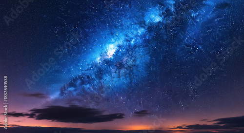 Obraz premium Stunning Milky Way Galaxy over Colorful Horizon Night Sky