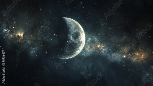 Fototapeta premium Stunning moon and stars wallpaper for desktop background space galaxy lunar...