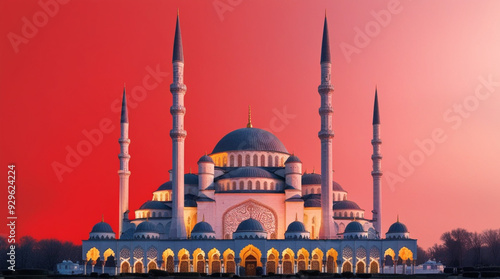 Fototapeta premium stunning mosque stands out against a bold red backdrop.