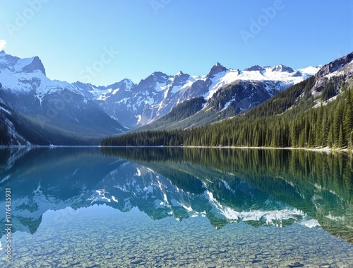 Naklejka premium Stunning Mountain Lake Reflection: Serenity in the Canadian Rockies