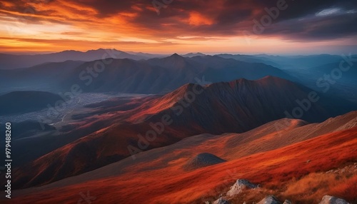 Fototapeta premium Stunning mountain landscape during sunset with vibrant colors and dramatic...