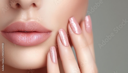 Obraz premium Stunning Nail Art And Flawless Makeup For A Fashionable Beauty. Featuring Beautiful Woman With Luxurious Nails And Makeup.