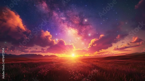 © AkuAku, Fototapeta premium Stunning natural scenery of sunset sunrise and Milky Way in the sky