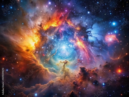 © Danicha, Fototapeta premium Stunning Nebula and Starry Sky in Deep Space with Vibrant Colors and Cosmic Elements Visible