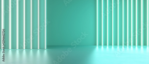 © ell, Obraz premium Stunning neon light installation modern studio interior design contemporary space wide angle aesthetic appeal
