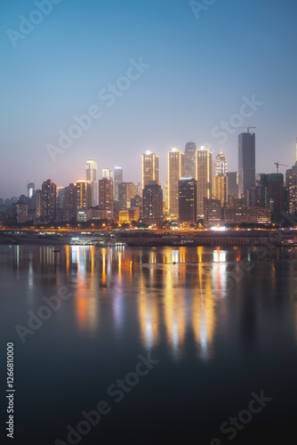 Fototapeta premium Stunning Night Cityscape of Chongqing with Vibrant Reflections