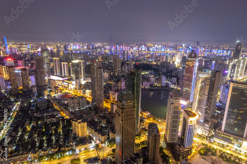 © zhouyilu, Obraz premium Stunning Night Cityscape with Vibrant Lights and Skyscrapers