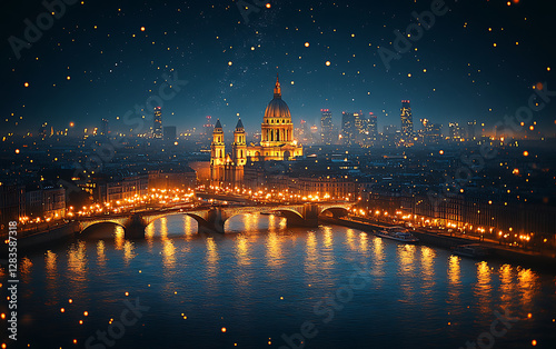 © udayanga, Obraz premium Stunning Night Satellite View of Europe’s Illuminated Cities