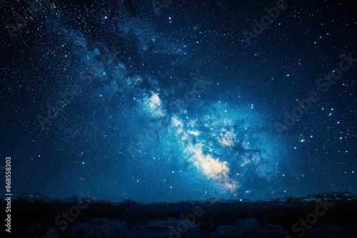 Fototapeta premium Stunning Night Sky with Milky Way Galaxy Over a Dark Landscape in a Clear...
