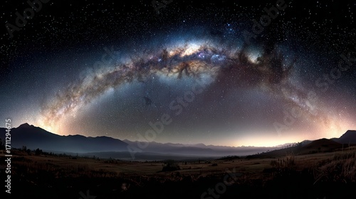 © วิไลพรรณ เที่ยงธรรม, Fototapeta premium Stunning Night Sky with Milky Way Over Mountain Landscape View