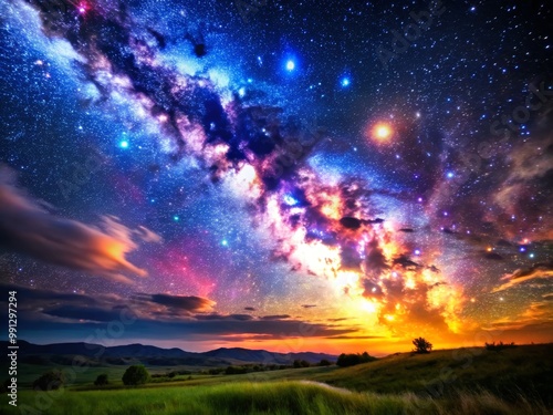 © Anchalee, Fototapeta premium Stunning night sky with vibrant colors
