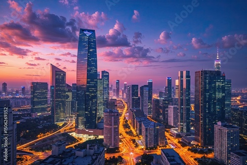 © Michael, Fototapeta premium Stunning Nighttime City Skyline Showcasing Modern Urban Architecture