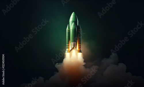 Obraz premium Stunning Nighttime Rocket Launch with Bright Glowing Flames
