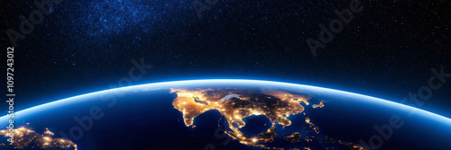 Fototapeta premium Stunning nighttime view of earth from space with visible city lights and...