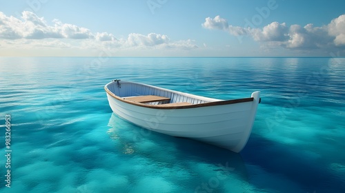 Naklejka premium Stunning Ocean View of a Boat Drifting on Crystal Blue Waters photo