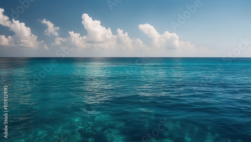 Obraz premium Stunning ocean view with calm blue waters, serene atmosphere, and fluffy...