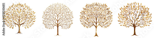 © T Studio, Naklejka premium Stunning of vibrant autumn trees in warm hues of gold orange and brown depicting the natural transition of the seasons