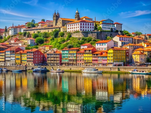 Naklejka premium Stunning Oporto Landscape: River, Architecture, and Hills of Portugal
