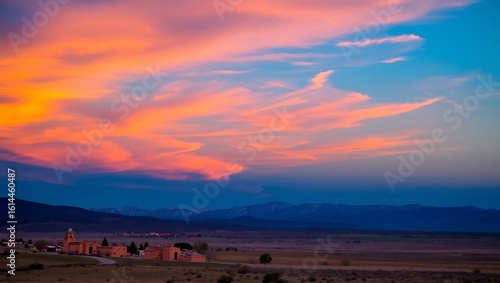 © RIFKA, Fototapeta premium "Stunning Orange and Blue Sunset Over the Fields of Santa Fe, New Mexico"