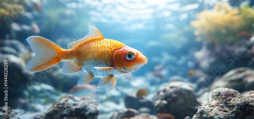 Naklejka premium Stunning Orange Goldfish in Vibrant Underwater Paradise