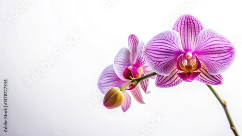 Obraz premium Stunning Orchid, White Background, Isolated Flower, Elegant Bloom, Botanical...
