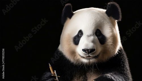 © Afaq, Fototapeta premium Stunning Panda Portrait: Professional Studio Setup with Key Light, Providing Ample Copy Space Against Black Background