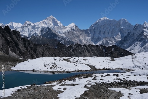© Iwona, Fototapeta premium Stunning panorama around Kongma La Pass 5535 m with Makalu, Baruntse and Chhukhung Glacier, trekking from Dingboche to Lobuche through the pass. Everest Base Camp trek. Himalayas, Nepal