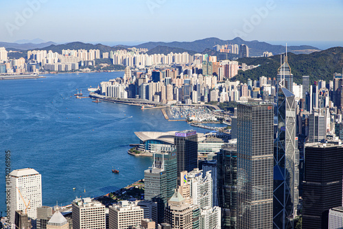 © Bossa Art, Obraz premium Stunning Panoramic View of Hong Kong Skyline and Victoria Harbour