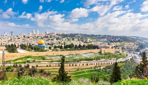 Fototapeta premium Stunning Panoramic View of Jerusalem, Israel Explore the Historical and...