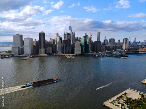 © Unwind, Fototapeta premium Stunning panoramic view of Manhattan Skyline, New York, USA. Panoramic Skyline with skyscrapers and financial district.