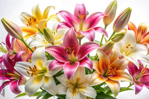 © nick, Fototapeta premium Stunning panoramic white lily photography: serene arrangements against a pure white backdrop.