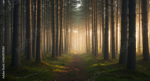 Obraz premium Stunning path through serene forest with magical light, perfect for nature...