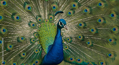 © sarinya, Fototapeta premium Stunning Peacock Displaying Vibrant Feathers in Natural Setting