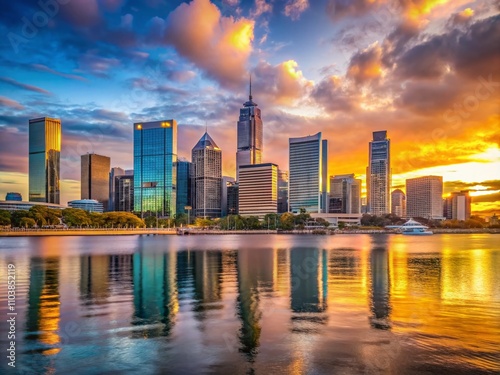 Fototapeta premium Stunning Perth Downtown Skyline at Sunset: A Captivating Cityscape Image of...
