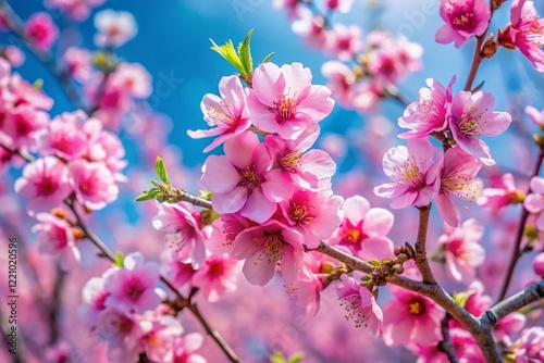 © Man888, Fototapeta premium Stunning Pink Almond Blossom Tree, Clear Blue Sky, Bokeh Effect - Spring Nature Stock Photo