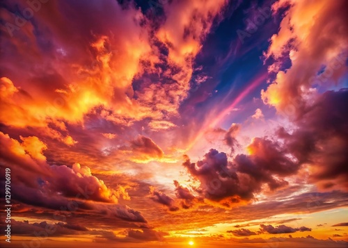 Fototapeta premium Stunning Pink and Orange Sunset Sky with Deep Depth of Field - High Resolution Stock Photo