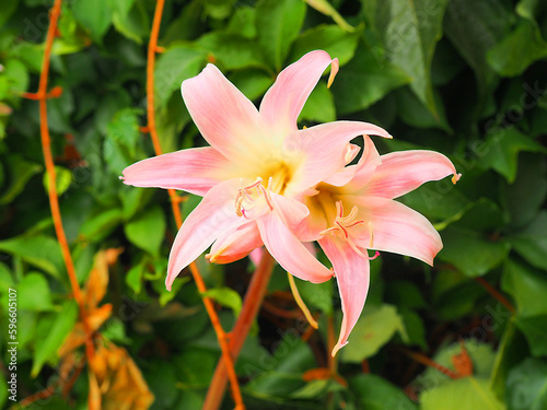Fototapeta premium stunning pink and yellow amaryllis flower
