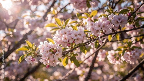 Fototapeta premium Stunning pink cherry flowers blooming in springtime
