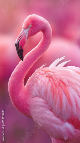 Obraz premium Stunning pink flamingo gracefully poses in a blurred background of soft pink...