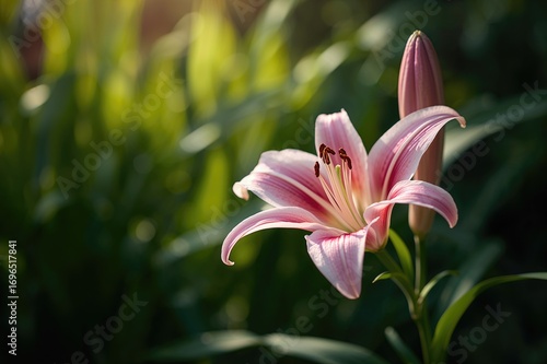 © AkuAku, Fototapeta premium Stunning Pink Lily Blooming Outdoors