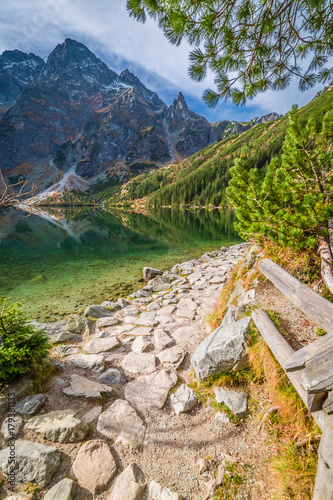 Obraz premium Stunning pond in the mountains at sunrise in autumn