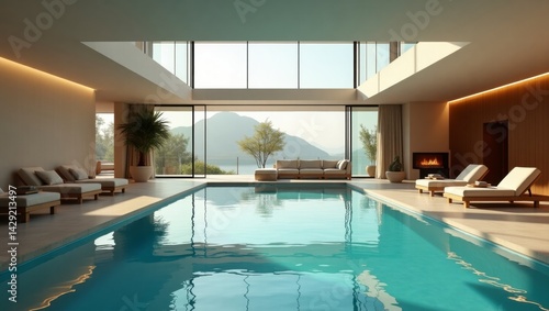 Fototapeta premium Stunning pool surrounded by lush greenery in a luxurious setting bathed in...