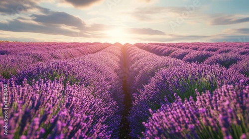 Naklejka premium Stunning purple lavender field in provence at sunrise, creating a picturesque...