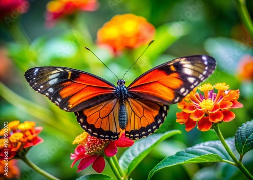 Fototapeta premium Stunning Rare Butterfly Perched on a Vibrant Flower in Lush Green Natural...