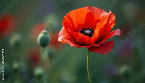 © RIDEC, Obraz premium Stunning Red Poppy Flower Closeup in Field