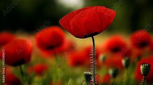© Laily, Obraz premium Stunning Red Poppy Flower in Field Closeup