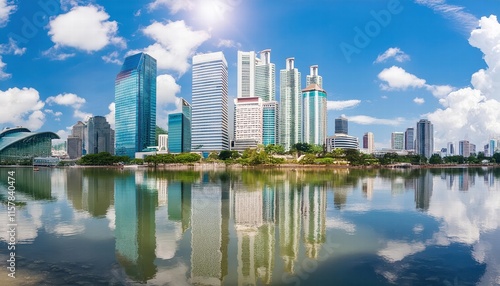 Naklejka premium Stunning Reflective Skyscrapers and Business Office Buildings Overlooking the...