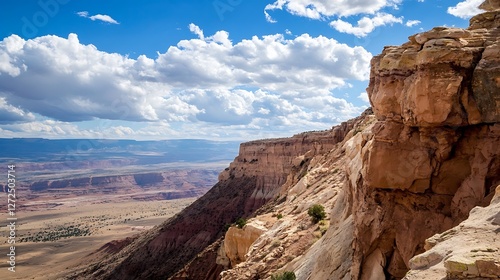 © The Little Hut, Obraz premium Stunning Rocky Canyon Landscape Under Beautiful Cloudy Blue Sky : Generative AI